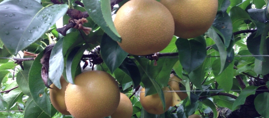 350~400gほどになる大きめの赤梨で、幸水と並んで生産量が多い品種です。1972年(昭和47年)に「菊水×八雲」×「八雲」の交配種として品種登録されましたが、その後のDNA鑑定により親子関係が誤りとされ、現在では「幸水」×「石井早生× 二十世紀」の可能性が高いといわれています。日持ちがよく、果肉はやわらかで多汁。甘みの中に適度な酸味があります。店頭に並ぶのは9月頭頃からです。
